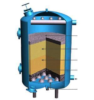 SK Engineering Pressure sand filter also includes a vertical or horizontal pressure vessel with a set of frontal pipe works and valves, media of various sizes and sizes mixed and supported by layers of pebbles and gravel, a tap distribution device for uniformly distribution of the input water throughout the cross-section of the filter and an underwater drain system for filtered water collection.