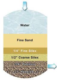 The backwash procedure is occasionally preceded by air scouring via agitation through the under drain system to help in cleaning the bed. The scrubbing action of the air scouring agitates the sand, loosening the captured particles. The filter is now ready to be reinstalled.